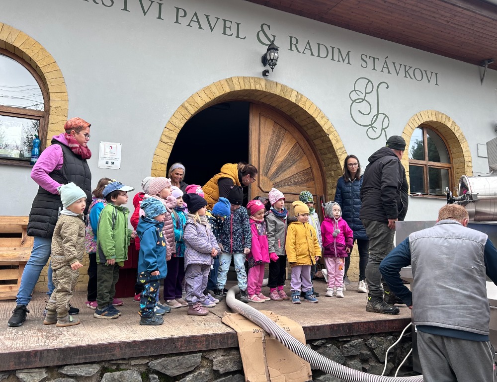 Děti měly jedinečnou příležitost nahlédnout do procesu zpracování právě dovezených hroznů. S velkým zájmem sledovaly, jak se hrozny lisují a co se děje s vylisovanou šťávou, a také se dozvěděly, jak vzniká mošt a následně i víno. Velkým zážitkem byla pro děti možnost ochutnat sladký hroznový mošt i samotné hrozny.