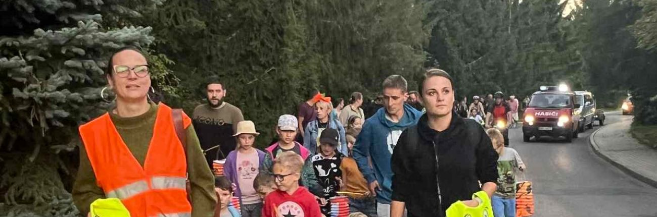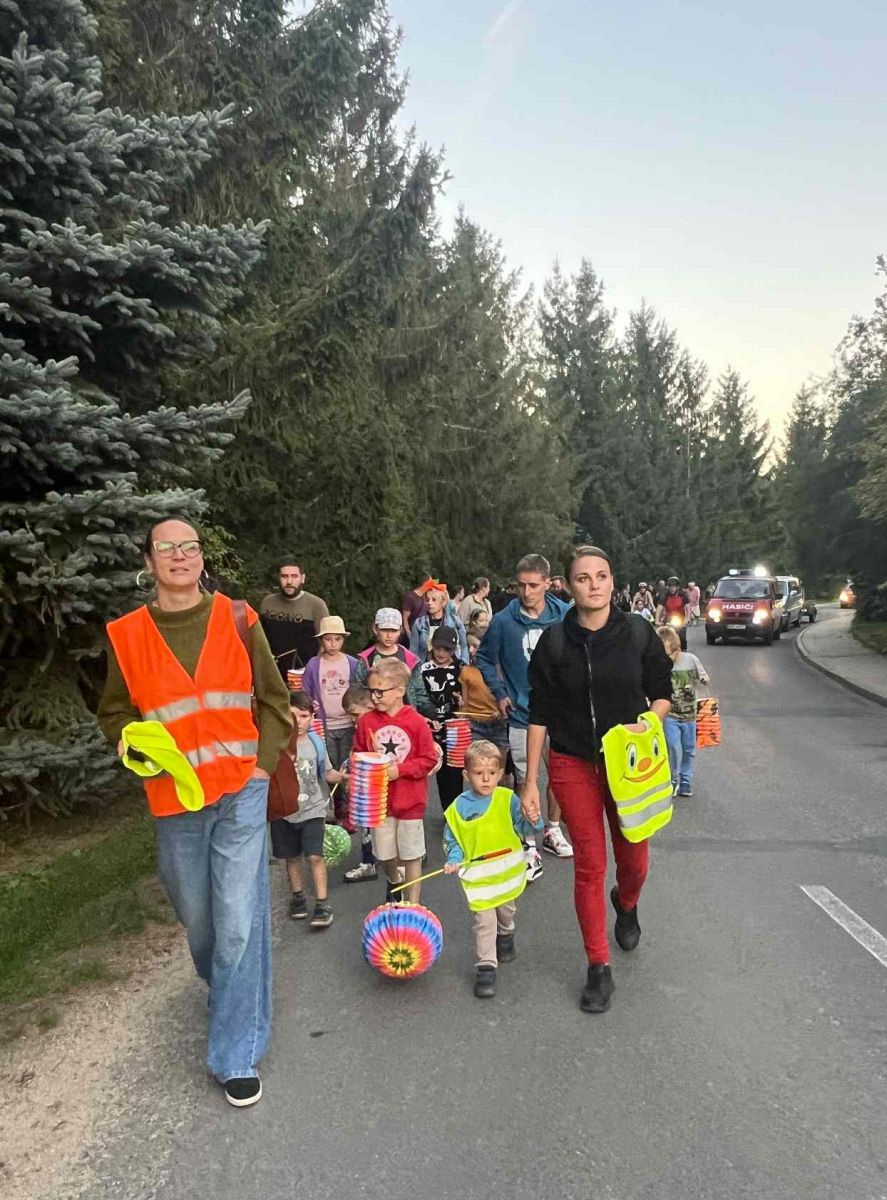 Průvod se vydal obcí až po setmění za doprovodu veselých písniček, aby se všem lépe do kopce šlapalo.